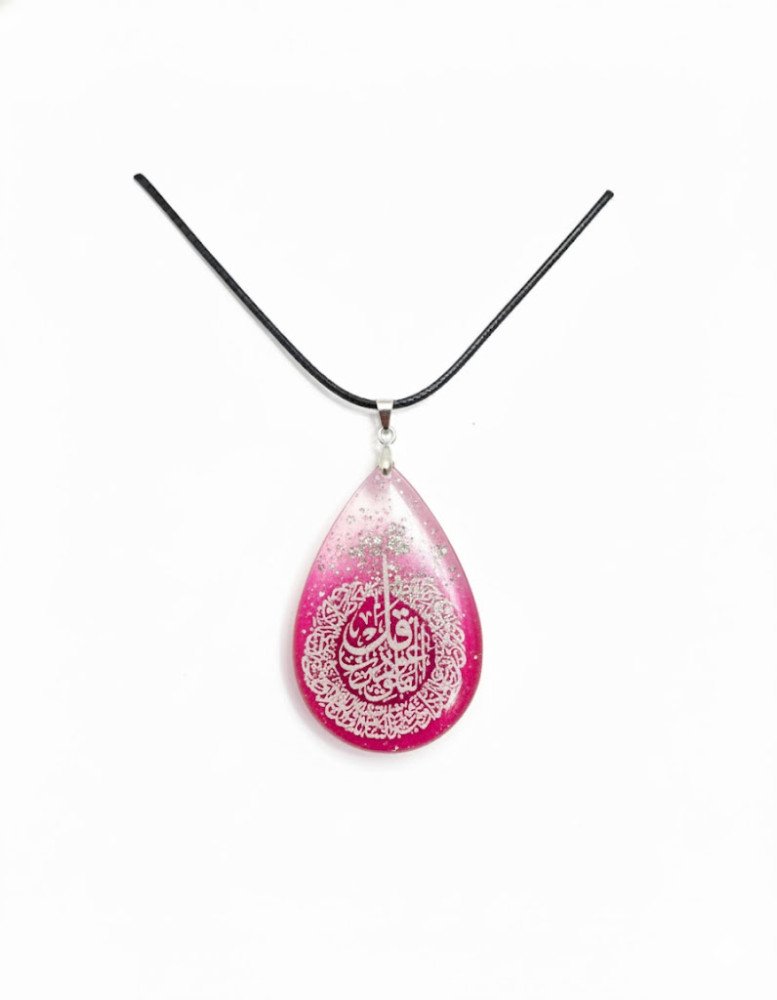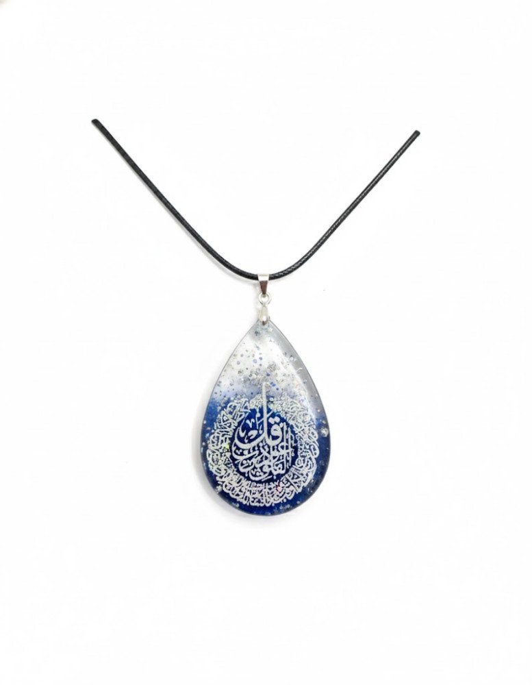 Pendant Shape: The overall physical shape of the pendant, like Amendment shape, necklace colour and type, is identical. Islamic Calligraphy: The beautiful, meaningful Islamic calligraphy (Suratul AlFalaq) featured on the piece is exactly the same as the picture on every necklace you order from our website.