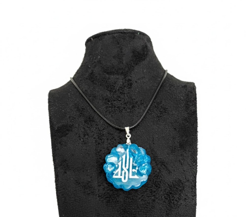 Due to the nature of resin art and the process of adding small decorative elements (such as the interior "rocks" or pigments), the exact placement, internal pattern, and subtle shape variations may differ slightly from the product image shown. You are purchasing a one-of-a-kind item, but the core design and the sacred "Allah" calligraphy remain the same. Material: High-quality Resin, Black Faux Leather Cord, Silver-Tone Metal Bail Pendant Diameter: 2.5*2.5 CM