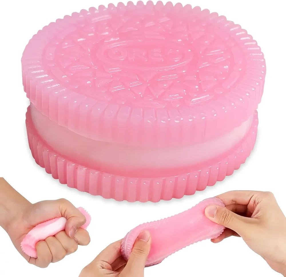 Realistic cookie design featuring a pinch able, sandwich-style look that closely mimics a classic cookie, its highly detailed and dessert-like appearance adds a playful and satisfying touch to your day.