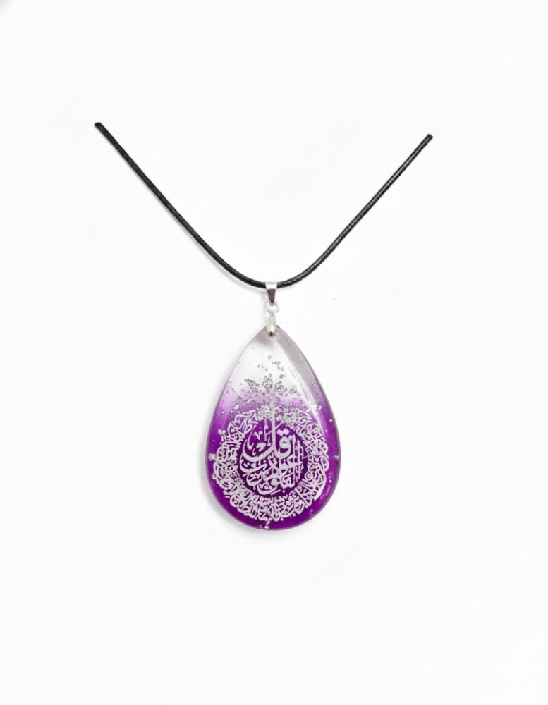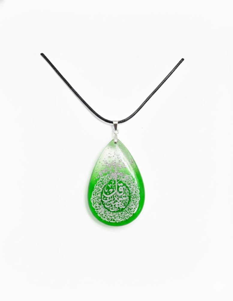 Pendant Shape: The overall physical shape of the pendant, like Amendment shape, necklace colour and type, is identical. Islamic Calligraphy: The beautiful, meaningful Islamic calligraphy (Suratul AlFalaq) featured on the piece is exactly the same as the picture on every necklace you order from our website.