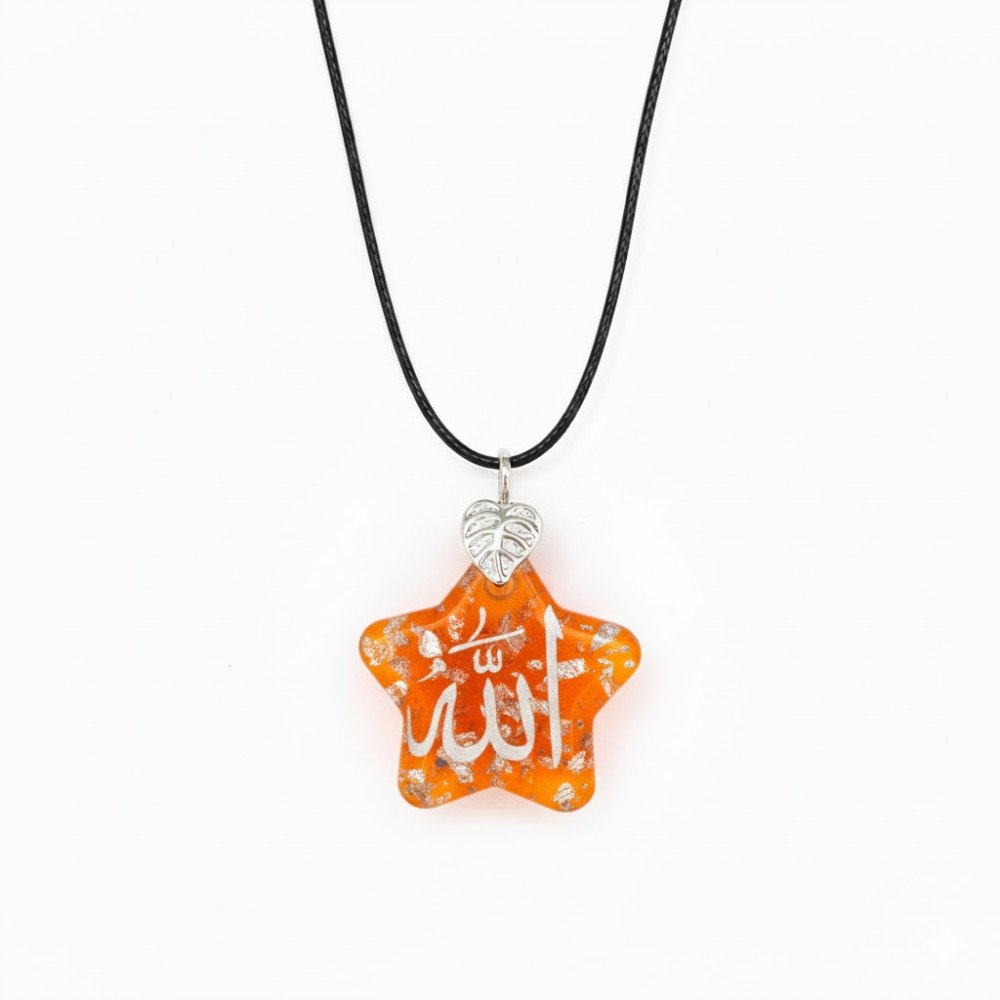 Pendant Shape: The overall physical shape of the pendant, like Amendment shape, necklace colour and type, is identical. Islamic Calligraphy: The beautiful, meaningful Islamic calligraphy featured on the piece is exactly the same as the picture on every necklace you order from our website. This pendant is a testament to dedicated craftsmanship and the beauty of controlled chaos. It’s perfect for those who cherish personalized jewelry with an artistic soul.